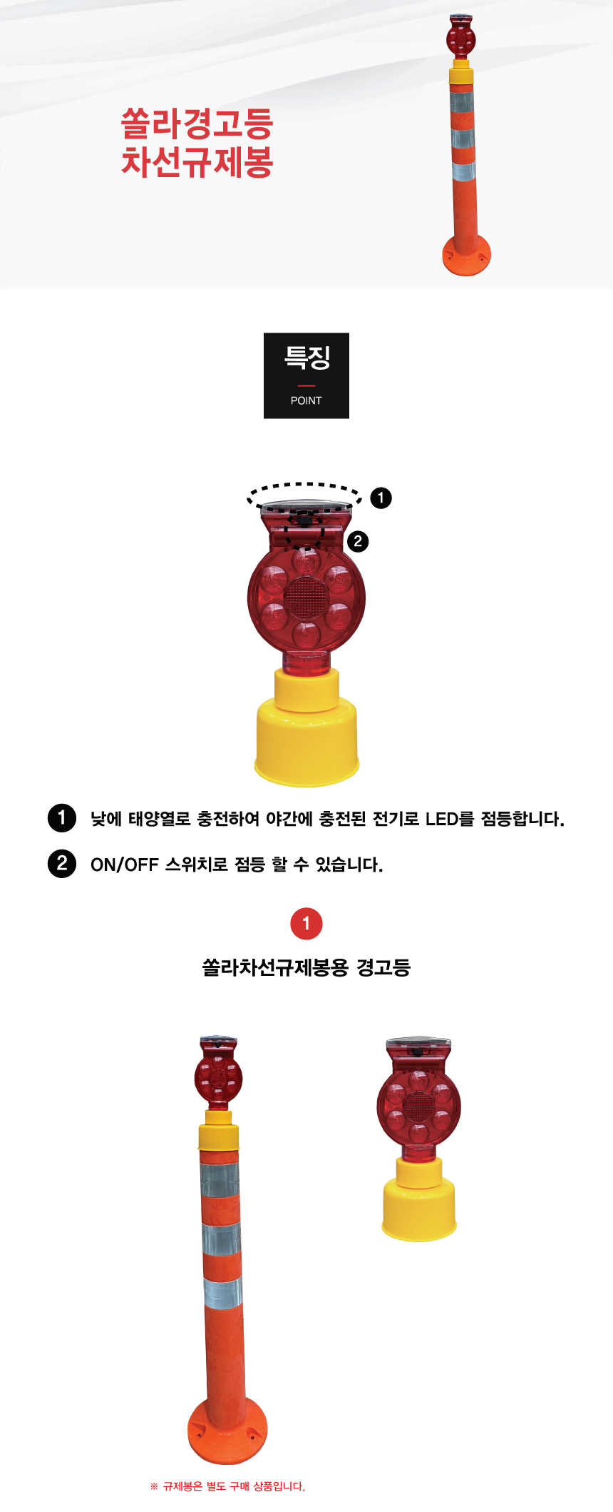 [H-1 차선규제봉(탄력봉) 규제봉 커버/ 쏠라차선규제봉] 쏠라경고등 차선규제봉