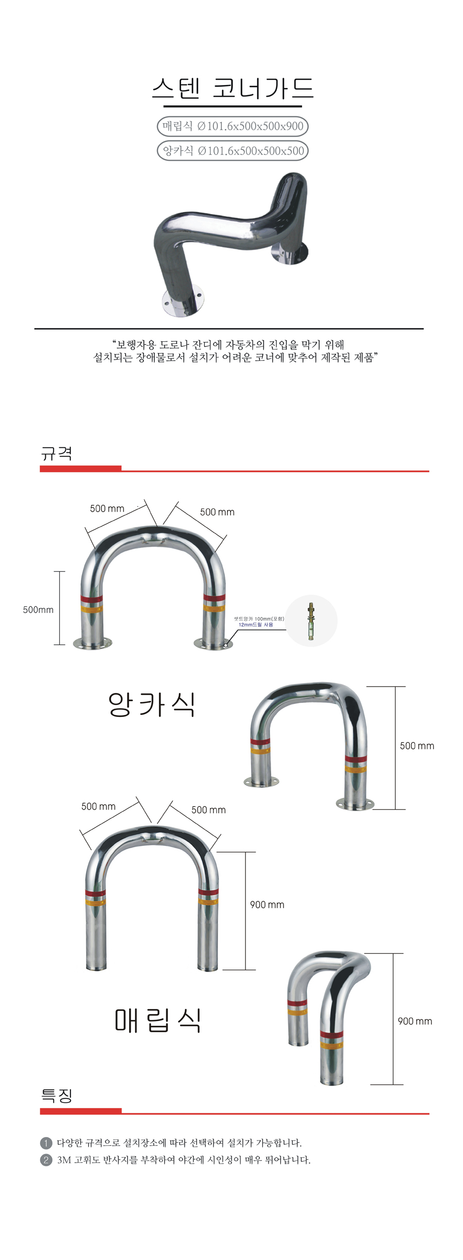 [H-46 추락방지(U형볼라드) 스텐U형볼라드 (특수 사이즈 주문가능)] 스텐코너가드