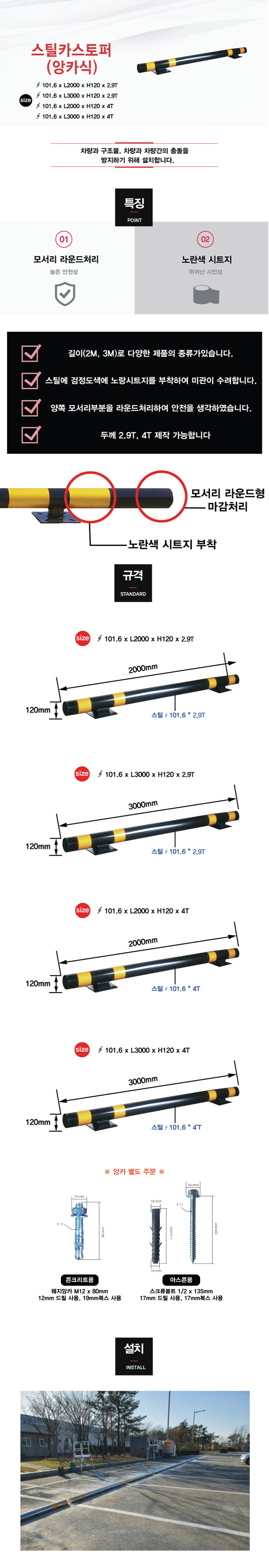 [H-2 카스토퍼(주차블럭) 스틸/스텐 카스토퍼 (특수 사이즈 주문가능)] 스틸카스토퍼514(앙카식)
