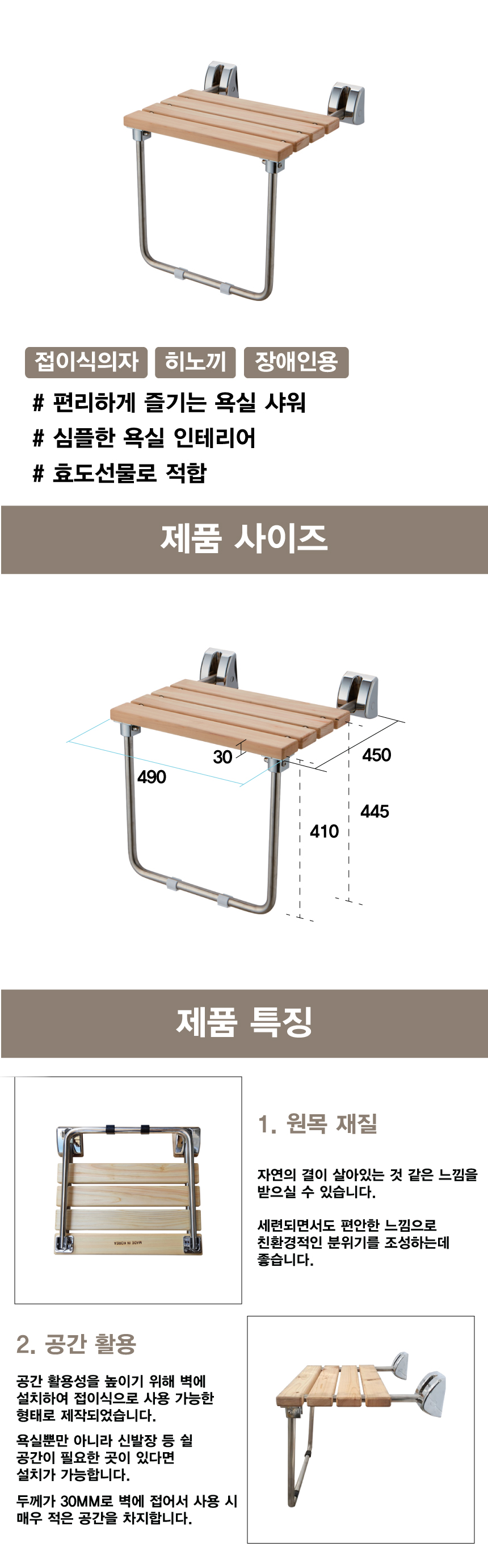 [H-31 샤워의자/접이식의자 샤워의자/접이식의자] 장애인전용의자-히노끼(BF용)