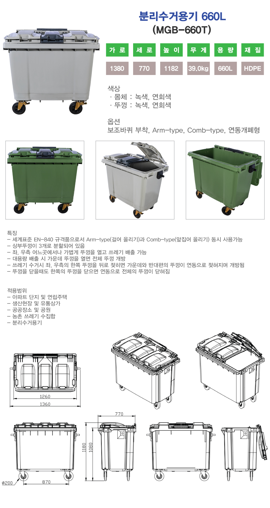 [H-22 쓰레기거치대(통) 실외용 쓰레기분리 수거함] 분리수거함 연동개폐형(660L)