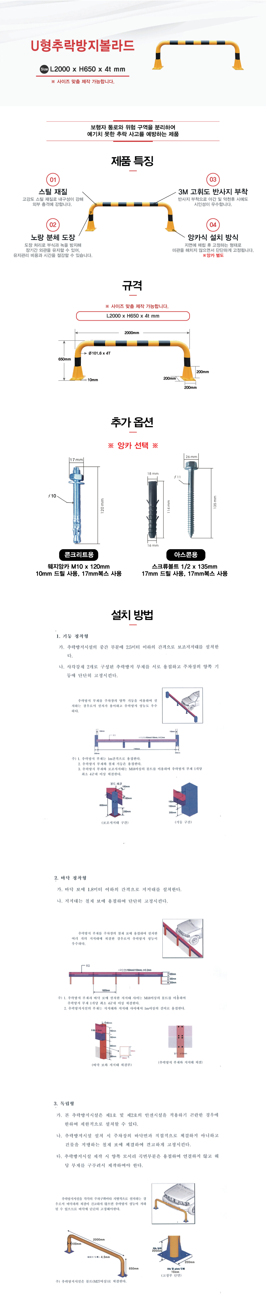 [H-46 추락방지(U형볼라드) 스틸U형볼라드 (특수 사이즈 주문가능)] U형추락방지볼라드