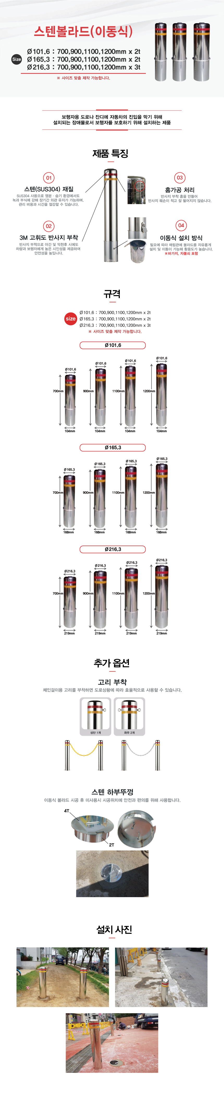 모델명 Ø216스텐볼라드(이동식)