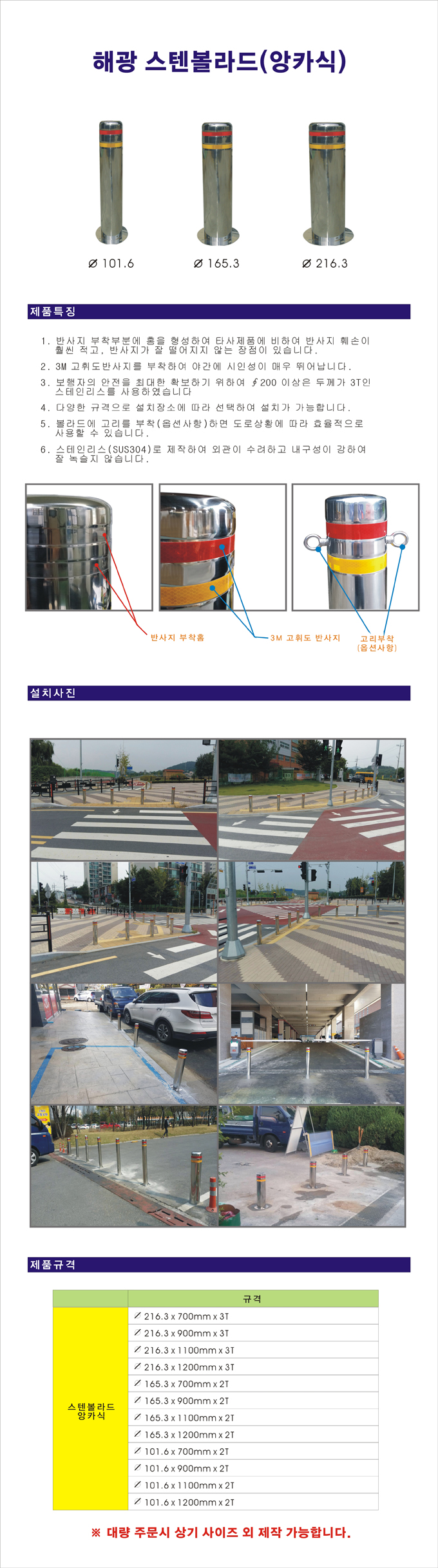 모델명 Ø216스텐볼라드(앙카식)