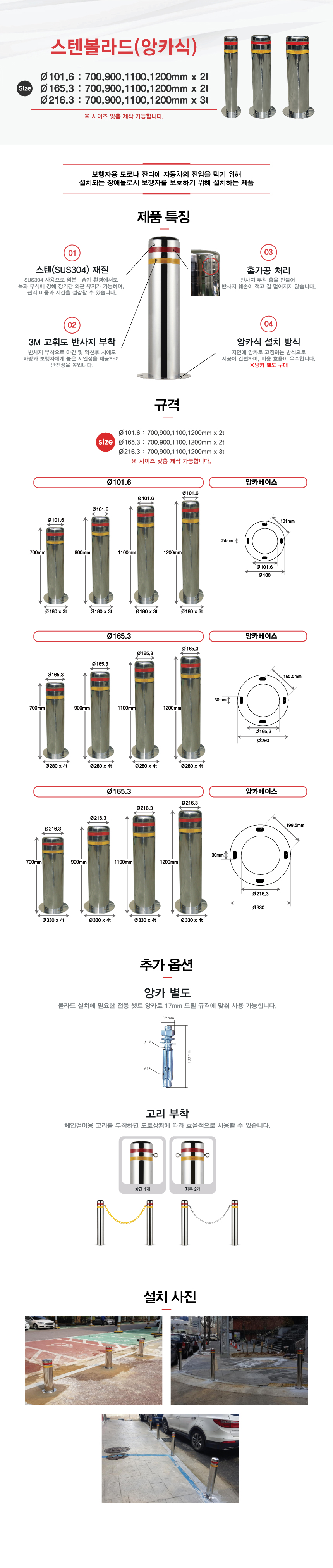 품명 Ø216스텐볼라드/앙카