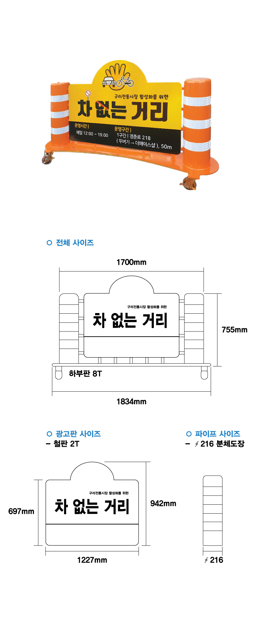 [H-16 바리게이트 스틸 바리게이트 (특수 사이즈 주문가능)] 주정차 바리게이트