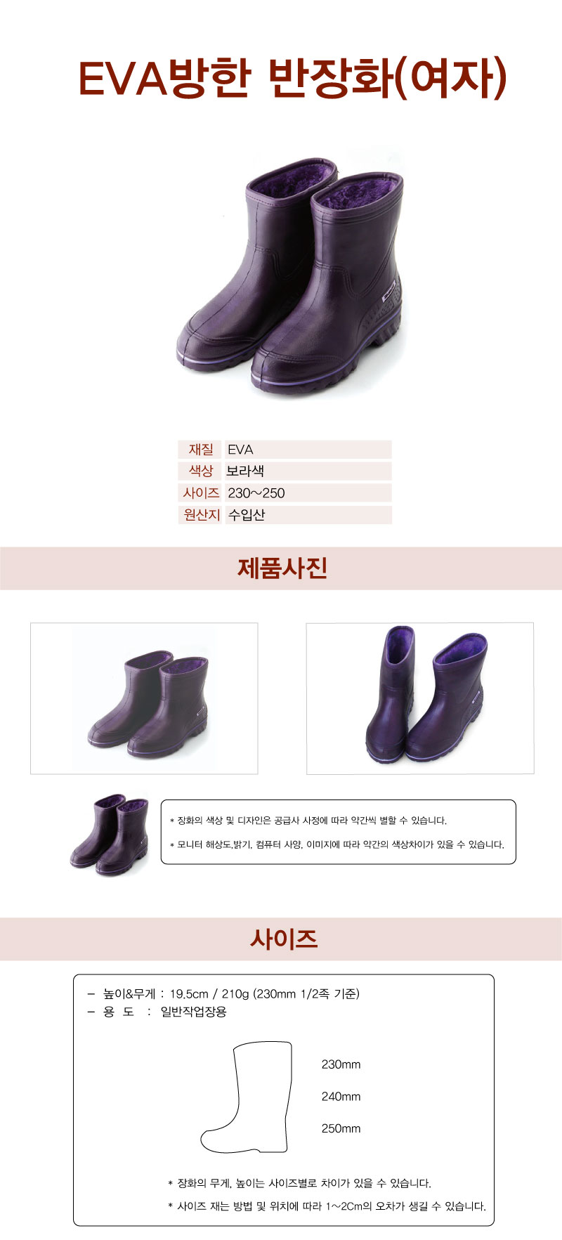 [H-32 우비(우의)/장화 장화] TK-B418 EVA방한 반장화(여자)