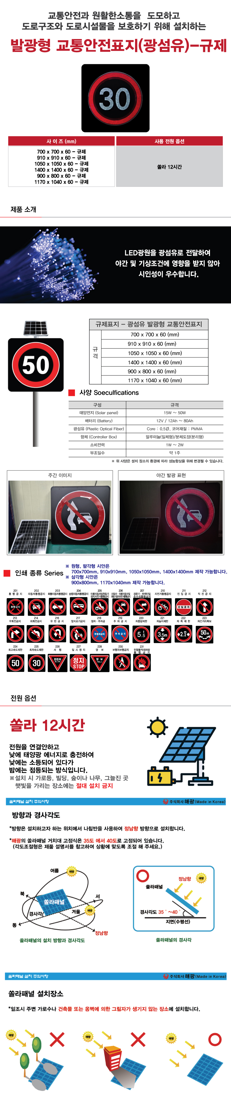 교통표지판/발광형표지판 교통안전표지판(발광형 광섬유)] 규제표지(광섬유)