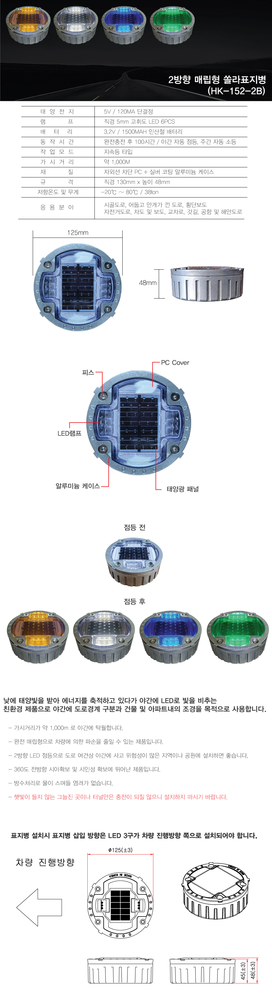 품명 매립쏠라표지병(HK-152)-2방향