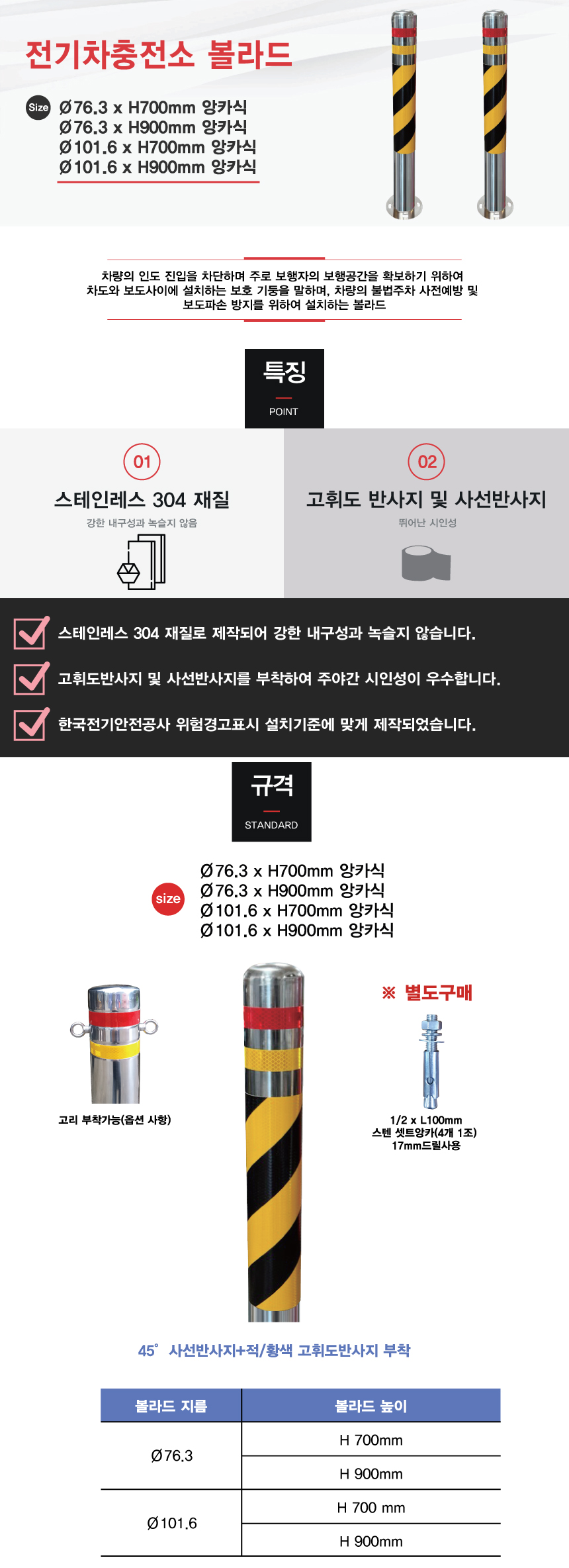 품명 전기차충전소 볼라드(앙카식)