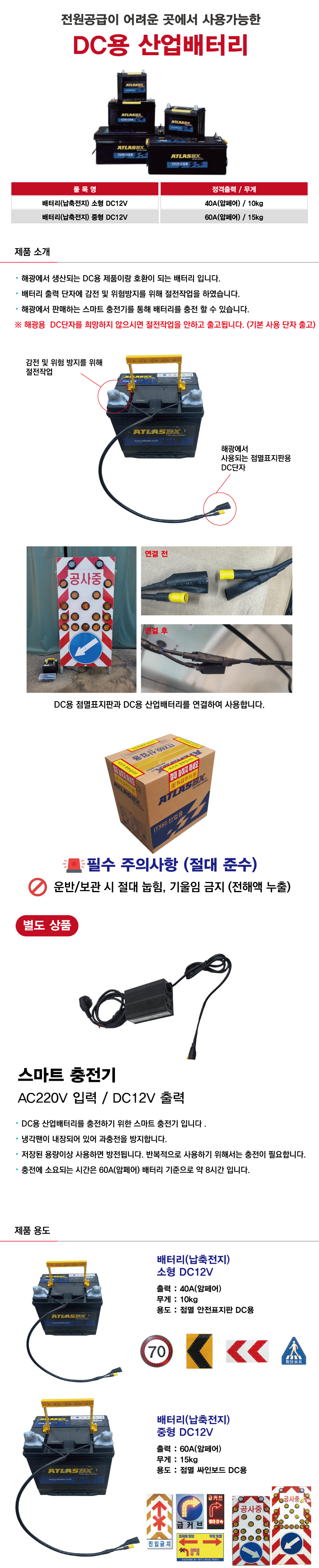 [H-53 싸인보드점멸표지 공사안내 점멸표지판] DC용 산업배터리