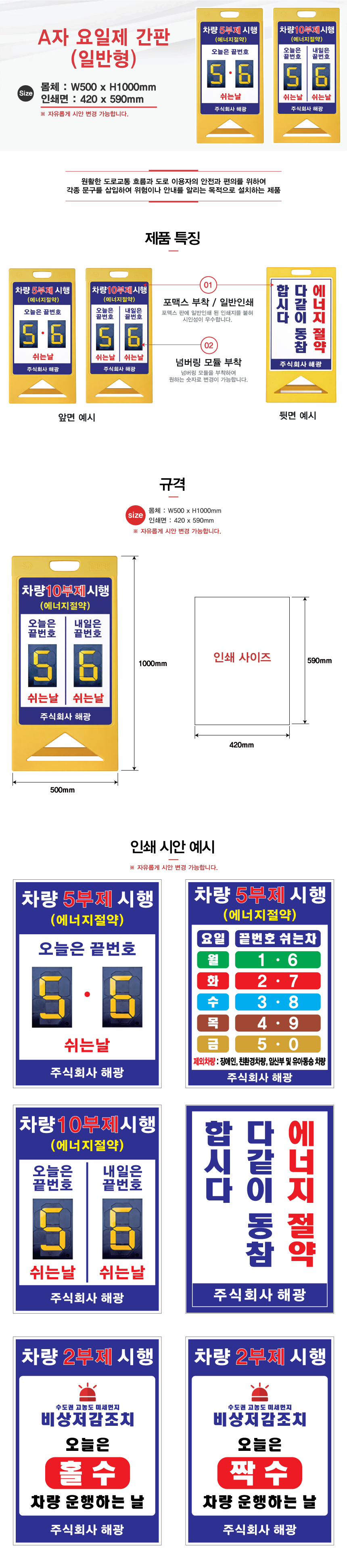 [H-3 주차금지(A자/원형) A자주차금지(기타 인쇄문구 가능)] A자 요일제 간판(일반형)