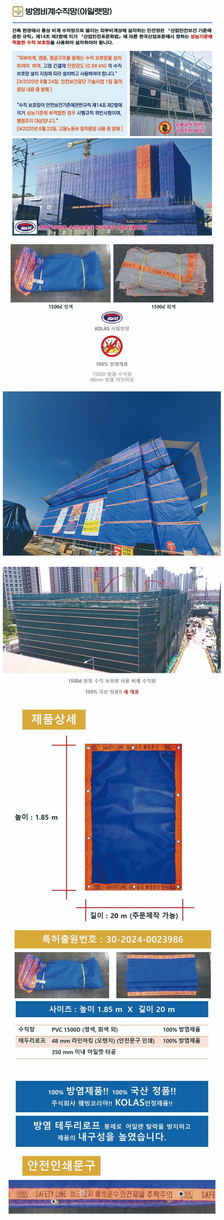 품명 방염비계수직망(아일렛망)