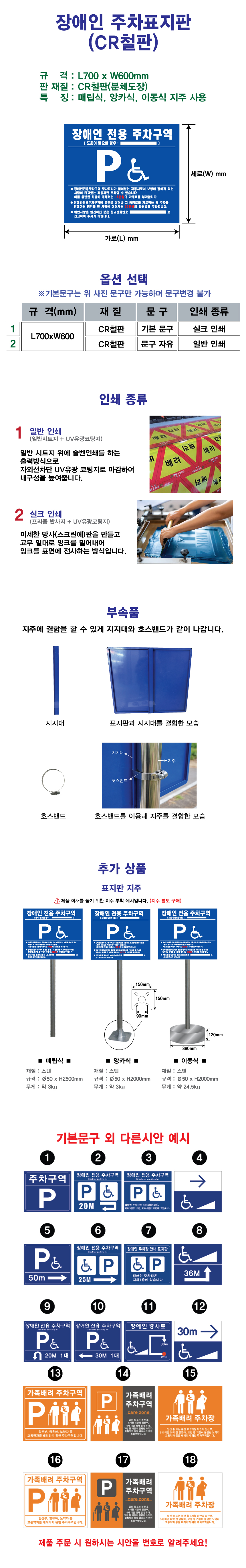 [H-30 장애인편의시설 장애인 주차표지판/가족배려 주차판] 장애인 주차표지판