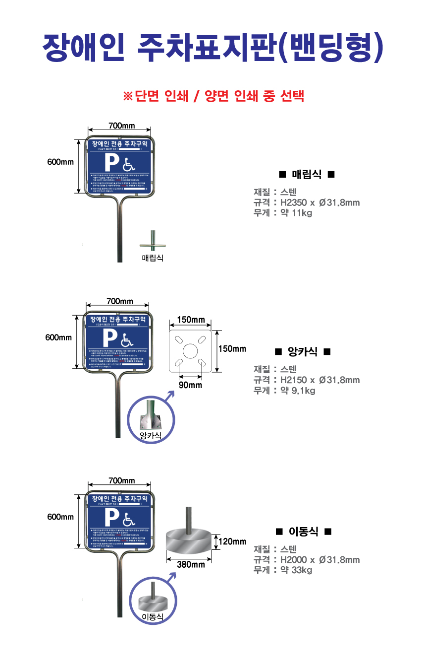 [H-30 장애인편의시설 장애인 주차표지판/가족배려 주차판] 장애인주차표지판(밴딩형) 매립식