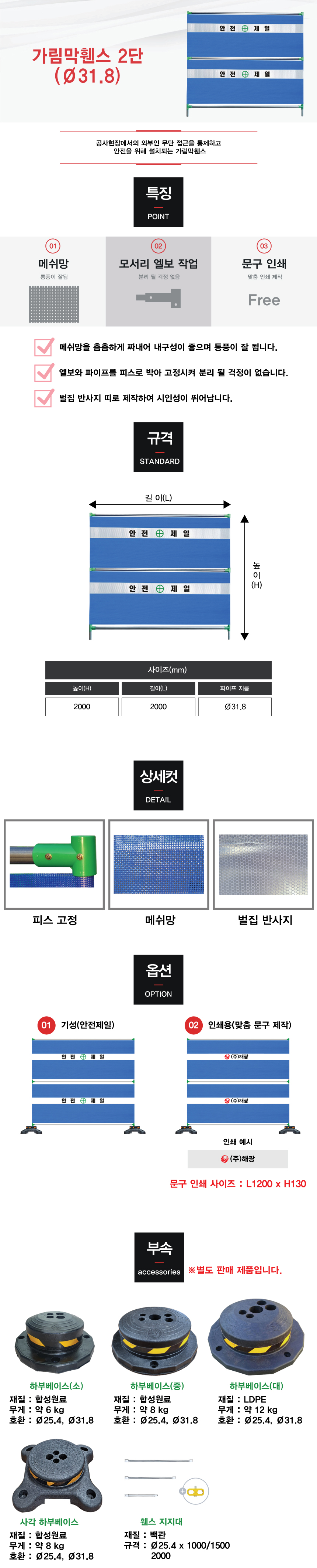 [H-41 가림막휀스 가림막 설치종류] 가림막휀스(∮31.8용) 2단