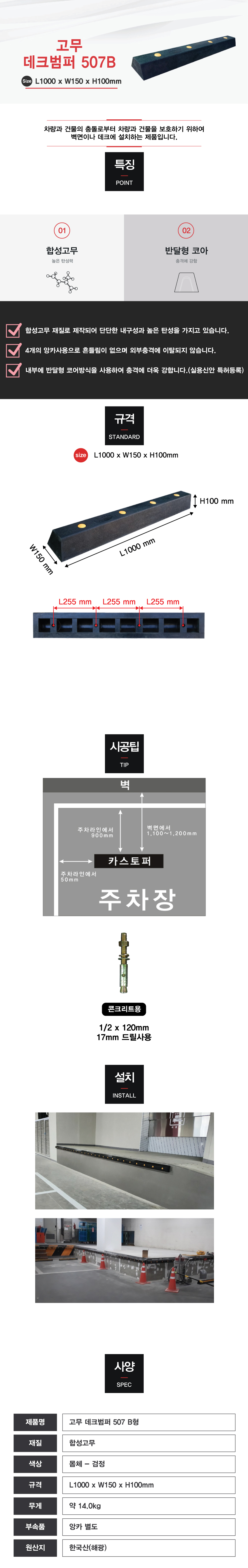 [H-2 카스토퍼(주차블럭) 데크범퍼] 고무데크범퍼507/B형