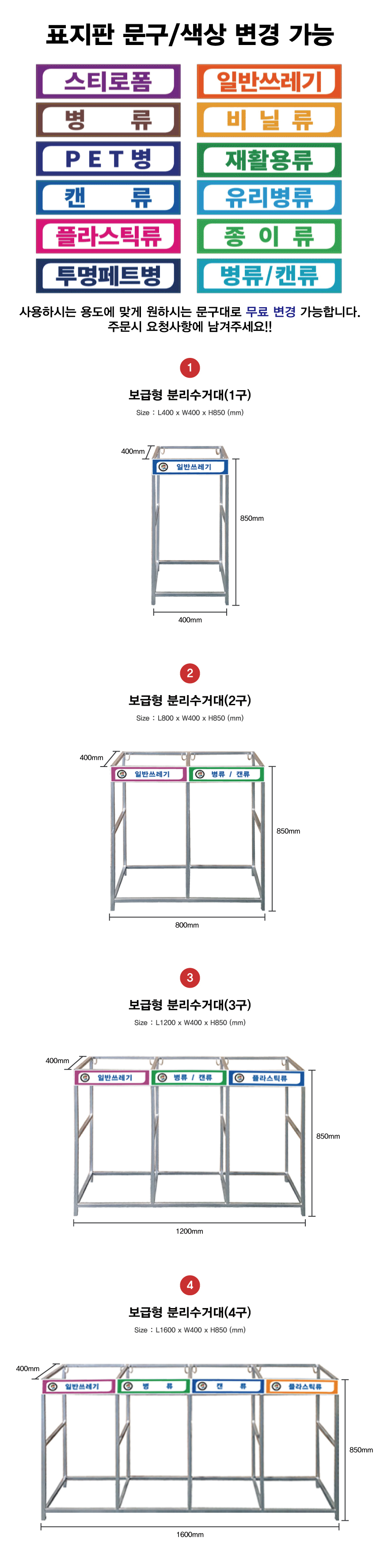 품명 분리수거대(보급형) 4구