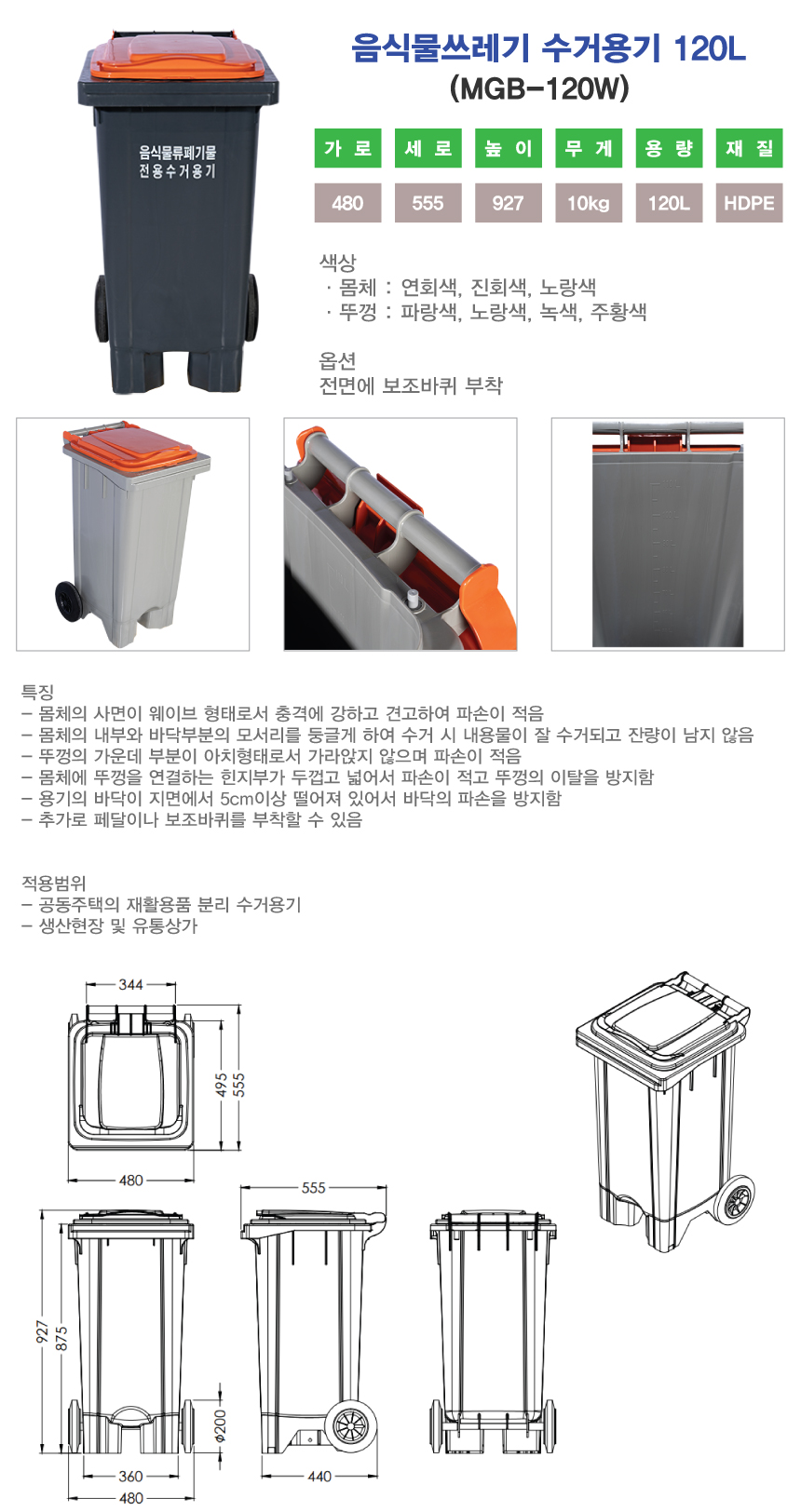 [H-22 쓰레기거치대(통) 실외용 쓰레기분리 수거함] 음식물수거함(120L)