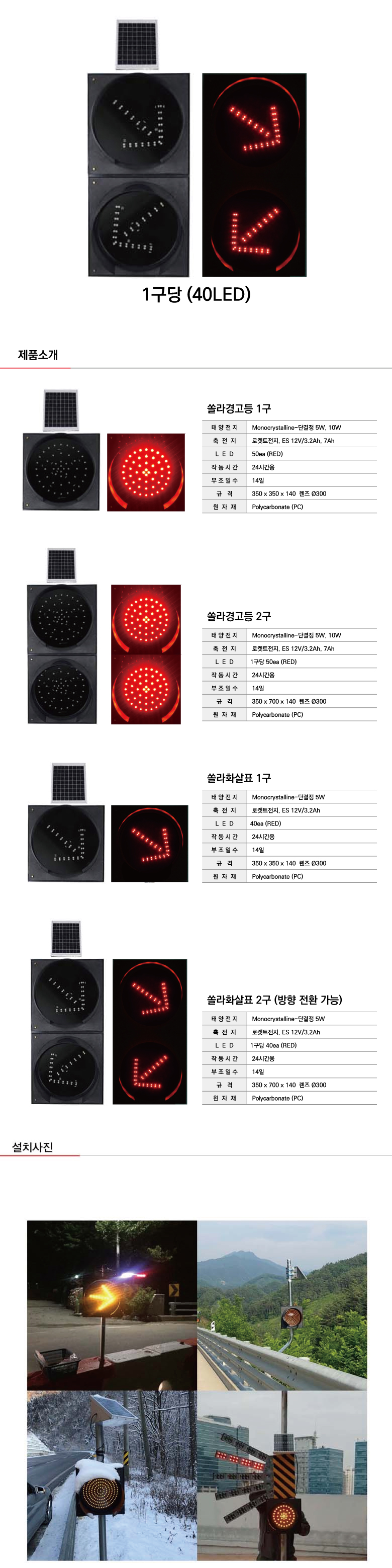 [H-24 쏠라교통표시등 경고등] 쏠라화살표2구(적색)