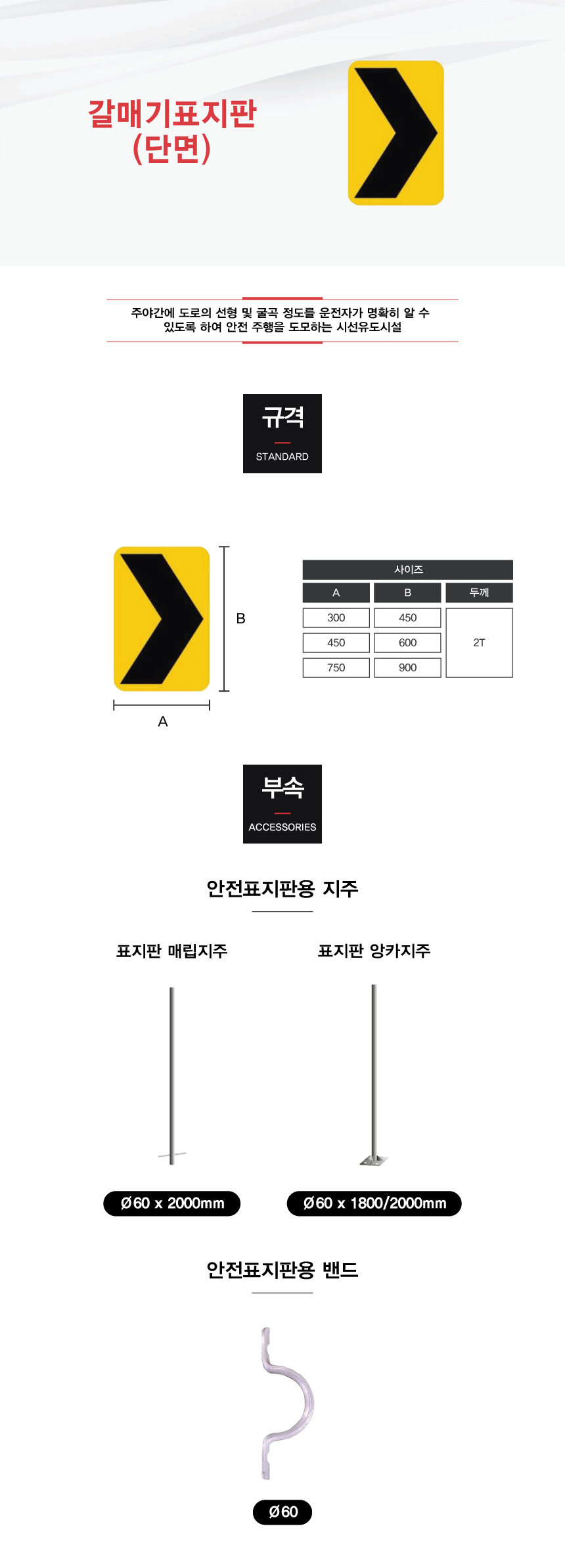 교통표지판/발광형표지판 갈매기표지판(초고휘도반사지)/기타 규격 제작가능] 갈매기표지판/단면