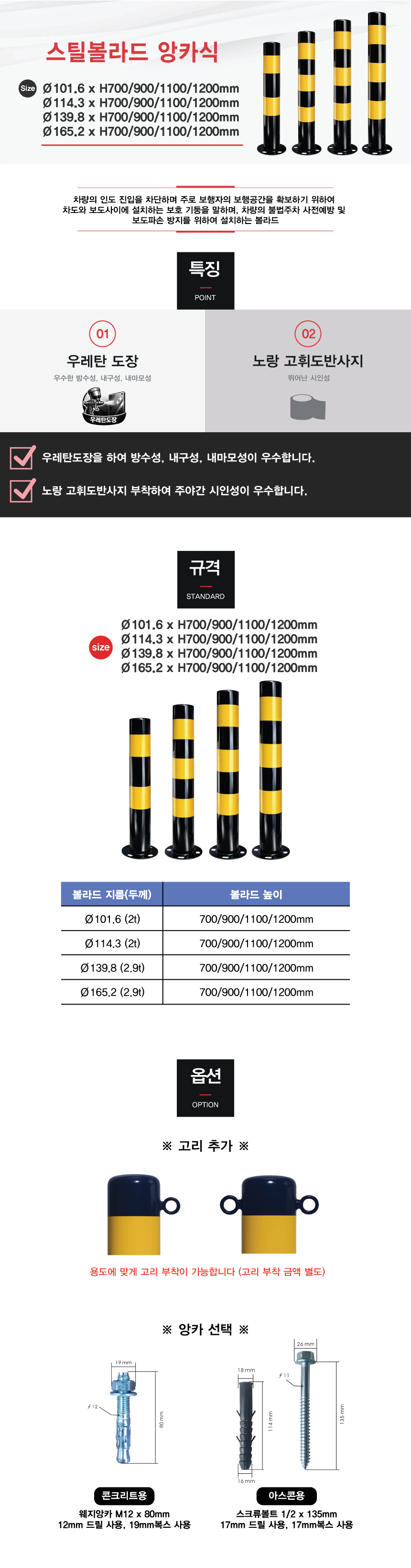 품명 Ø140스틸볼라드/앙카